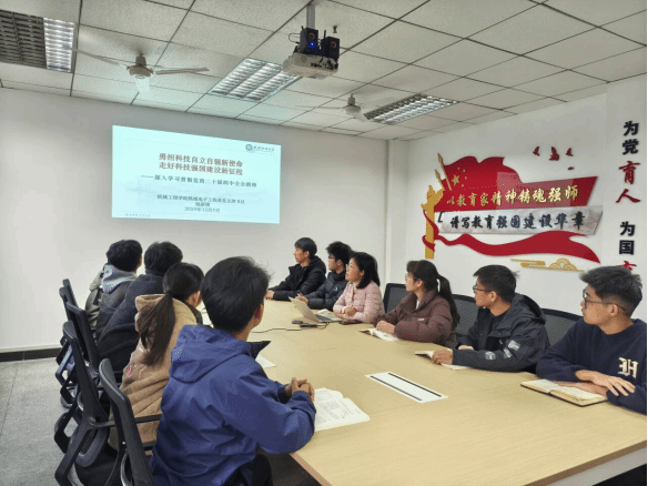 12月5日,学习贯彻党的二十届四中全会精神“双带头人”宣讲报告会在青山校区教一428会议室举行。校“双带头人”宣讲队成员、机械电子工程系教工党支部书记钱新博副教授作题为“勇担科技自立自强新使命 走好科技强国建设新征程”的专题宣讲。学院部分师生党员代表参加学习。